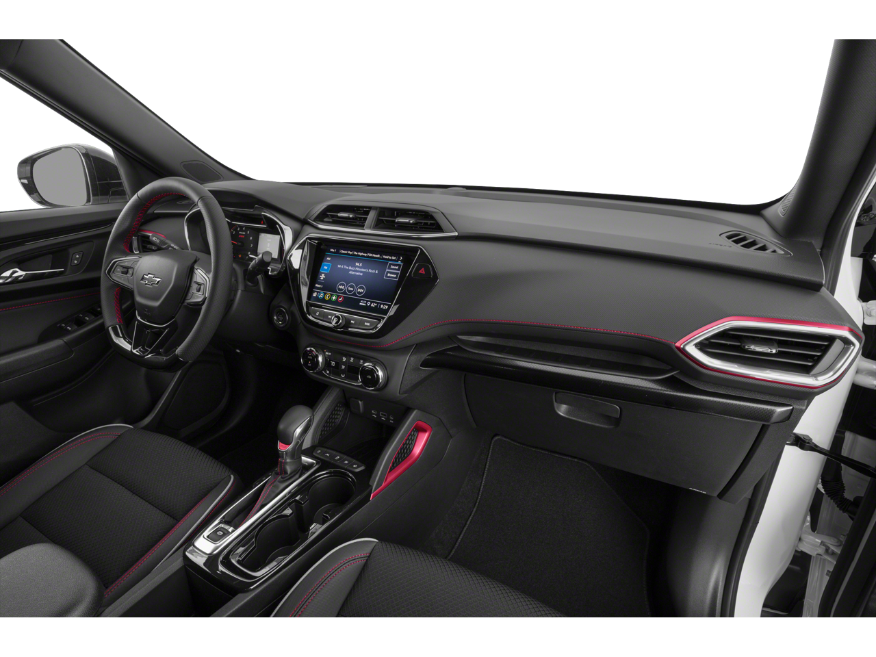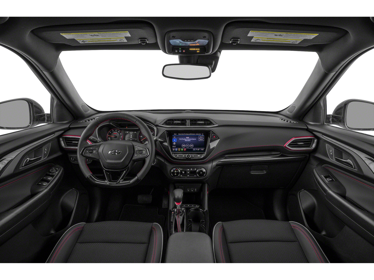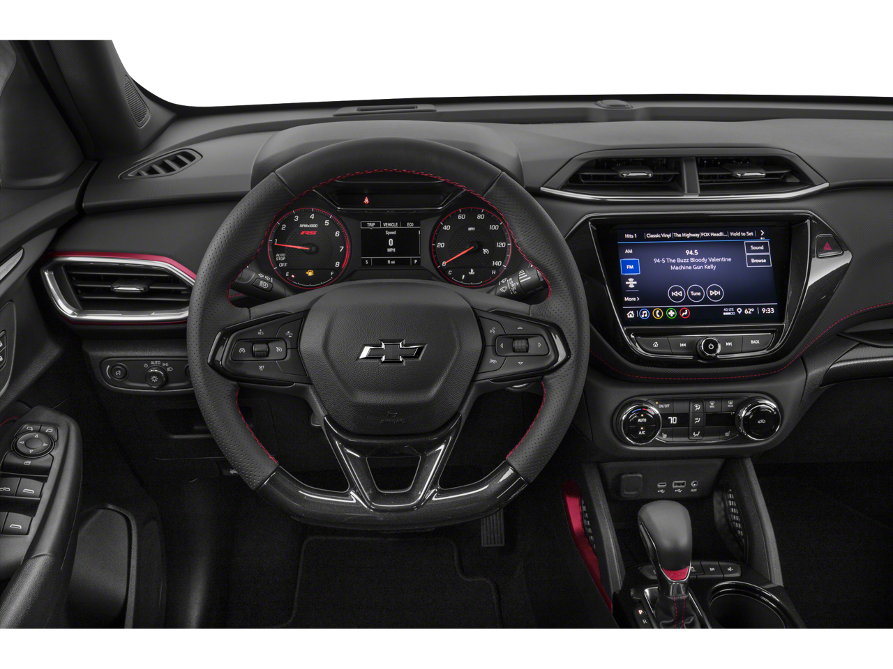 1 Type-A & 1 Type-C USB Charging-Only Ports, 120-Volt Power Outlet, 2-Way Adjustable Front Head Restraints, 2-Way Power Driver Lumbar Seat Adjuster, 4-Way Manual Front Passenger Seat Adjuster, 4-Wheel Disc Brakes, 5.45 Axle Ratio, 6 Speakers, 6-Speaker Audio System Feature, 7 Diagonal Color Touchscreen, 8-Way Power Driver Seat Adjuster, 8 Diagonal Color Touchscreen Display, ABS brakes, Air Conditioning, Alloy wheels, AM/FM radio: SiriusXM, Auto High-beam Headlights, Brake assist, Bumpers: body-color, Cabin Humidity Sensor, Cloth w/Leatherette Seat Trim, Compass, Convenience Package, Delay-off headlights, Driver & Front Passenger Illuminated Vanity Mirrors, Driver Confidence Package, Driver door bin, Driver vanity mirror, Dual front impact airbags, Dual front side impact airbags, Electronic Stability Control, Emergency communication system: OnStar and Chevrolet connected services capable, Exterior Parking Camera Rear, Flat-Folding Front Passenger Seatback, Front anti-roll bar, Front Bucket Seats, Front Center Armrest, Front fog lights, Front License Plate Bracket, Front reading lights, Front wheel independent suspension, Fully automatic headlights, Heated door mirrors, Heated Driver & Front Passenger Seats, Heated front seats, Heated Steering Wheel, Heated steering wheel, Illuminated entry, Inside Rear-View Auto-Dimming Mirror, Knee airbag, Lane Change Alert w/Side Blind Zone Alert, Leather Shift Knob, Leather steering wheel, Low tire pressure warning, Mosaic Black Metallic Two-Tone Roof, Not Equipped w/Rear Park Assist (060), Occupant sensing airbag, Overhead airbag, Overhead console, Panic alarm, Passenger door bin, Passenger vanity mirror, Power door mirrors, Power driver seat, Power steering, Power windows, Preferred Equipment Group 1RS, Radio data system, Radio: Chevrolet Infotainment 3 System, Rear Cross Traffic Alert, Rear Park Assist, Rear seat center armrest, Rear side impact airbag, Rear window defroster, Rear window wiper, Remote keyless entry, Ride & Handling Suspension, Security system, Single-Zone Auto Climate Control Air Conditioning, SiriusXM Radio, Speed control, Split folding rear seat, Spoiler, Steering wheel mounted audio controls, Tachometer, Telescoping steering wheel, Tilt steering wheel, Traction control, Trip computer, Variably intermittent wipers, Wheels: 18 High Gloss Black Machined Aluminum, Wireless Apple CarPlay/Android Auto.