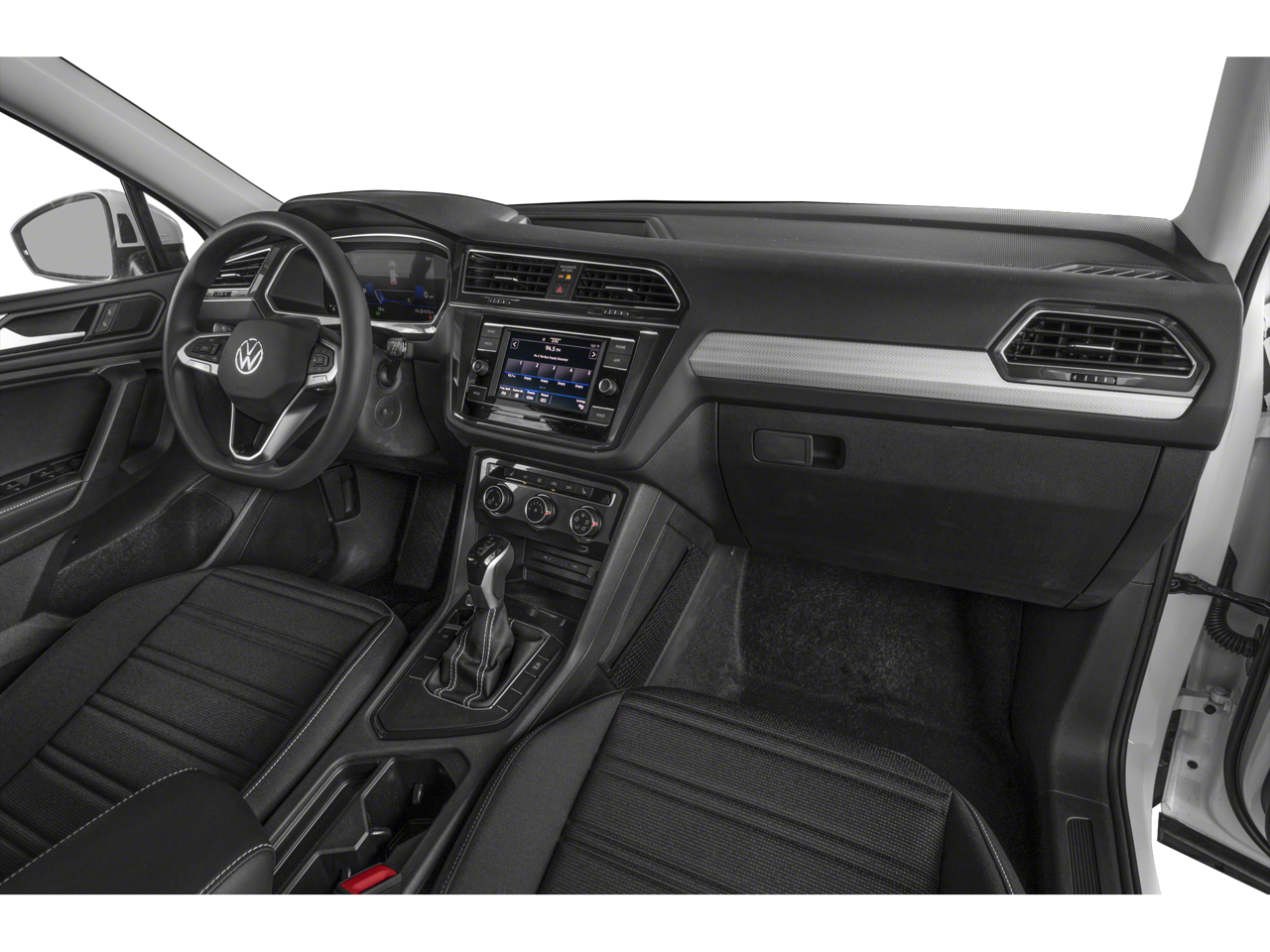 3-Row Rubber Monster Mats w/Logo Kit (Set of 5), 3.33 Axle Ratio, 3rd row seats: bench, 4-Wheel Disc Brakes, 4-Wheel Independent Suspension, 6 Speakers, ABS brakes, Air Conditioning, Alloy wheels, AM/FM radio, Brake assist, Bumpers: body-color, Cloth Seating Surfaces, Compass, Credit - Rear Sensors Removed, Delay-off headlights, Driver door bin, Driver vanity mirror, Dual front impact airbags, Dual front side impact airbags, Electronic Stability Control, Emergency communication system: VW Car-Net Safe & Secure 5-year, Exterior Parking Camera Rear, Forward collision: FCW w/Autonomous Emergency Braking mitigation, Four wheel independent suspension, Front anti-roll bar, Front Bucket Seats, Front Center Armrest, Front reading lights, Fully automatic headlights, Heated door mirrors, Heated Front Bucket Seats, Heated front seats, Heavy Duty Trunk Liner w/VW CarGo Blocks, Illuminated entry, Leather Shift Knob, Low tire pressure warning, Luggage Net for Cargo Area, Occupant sensing airbag, Outside temperature display, Overhead airbag, Overhead console, Panic alarm, Passenger door bin, Passenger vanity mirror, Power door mirrors, Power steering, Power windows, Radio data system, Radio: Composition Color AM/FM, Rear anti-roll bar, Rear reading lights, Rear seat center armrest, Rear window defroster, Rear window wiper, Remote keyless entry, Roadside Assistance Kit, Speed control, Speed-sensing steering, Split folding rear seat, Spoiler, Steering wheel mounted audio controls, Tachometer, Telescoping steering wheel, Tiguan Protection Package (3-Row), Tilt steering wheel, Traction control, Trip computer, Turn signal indicator mirrors, Variably intermittent wipers, Wheels: 17 2-Tone Machined Twin 5-Spoke Alloy.